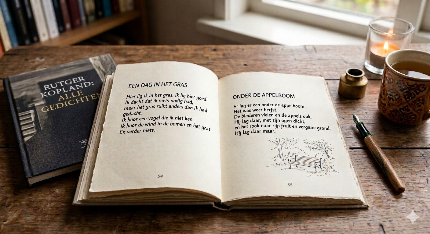 Rudi van den Hoofdakker werd bekend als dichter onder de naam Rutger Kopland. Hij was psychiater en hoogleraar biologische psychiatrie in Groningen, maar bereikte vooral het grote publiek met zijn toegankelijke, lichte poëzie – melancholiek, subtiel en ironisch – waardoor hij uitgroeide tot Nederland’s meest geliefde dichter. Hij debuteerde in 1966, publiceerde meer dan vijftien bundels en won onder andere de P.C. Hooft‑prijs (1988) en VSB‑Poëzieprijs (1998).